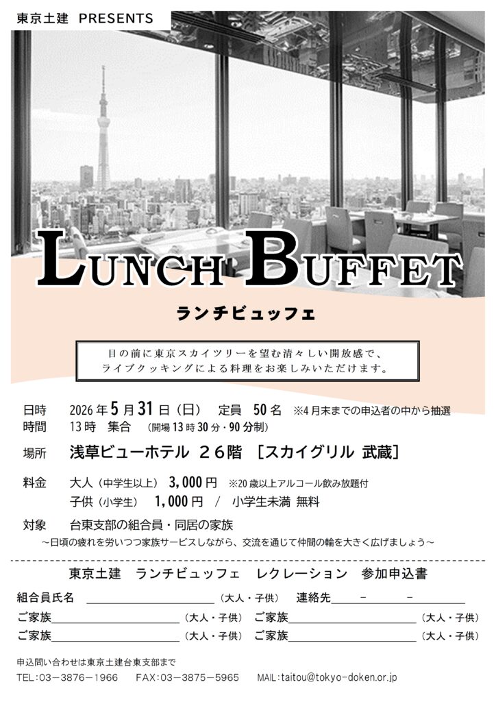 申込みはお電話(03-3876-1966)または、下記ホームページ【 問い合わせフォーム 】より「イベント」をチェックし、問い合わせ内容に【 ランチビュッフェ参加 】と入力し、お名前、参加人数(大人人数・子供人数)と合わせて送信して下さい。